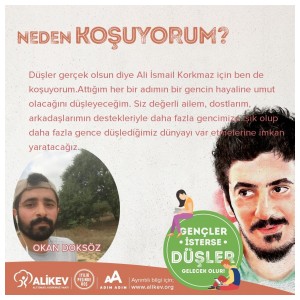 Düşler gerçek olsun diye Ali İsmail Korkmaz için ben de koşuyorum. Bu sefer benim için her bir adımın anlamı farklı olacak, attığım her bir adımın bir gencin hayaline umut olacağını düşleyeceğim. Siz değerli ailem, dostlarım, arkadaşlarımın destekleriyle daha fazla gencimize ışık olacağız. Daha fazla gencimizin düşlediğimiz dünyayı var etmelerine imkan yaratalım.